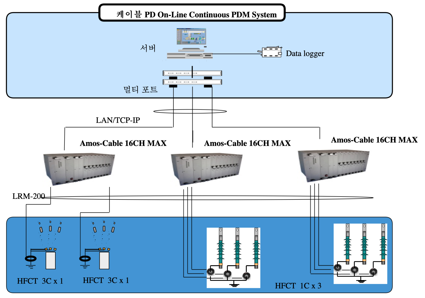 AMoS-Cable detects, analyze and records by using High Frequency Current Transit of electro-wave signals in all voltage ranges which be generated by partial discharge in MV SWGR, AIS, Cable, Cable accessories during the abnormal phenomena . It is continuous monitoring system via on-line when internal failure was detected by measuring signal which is generated by partial discharge under live condition.
