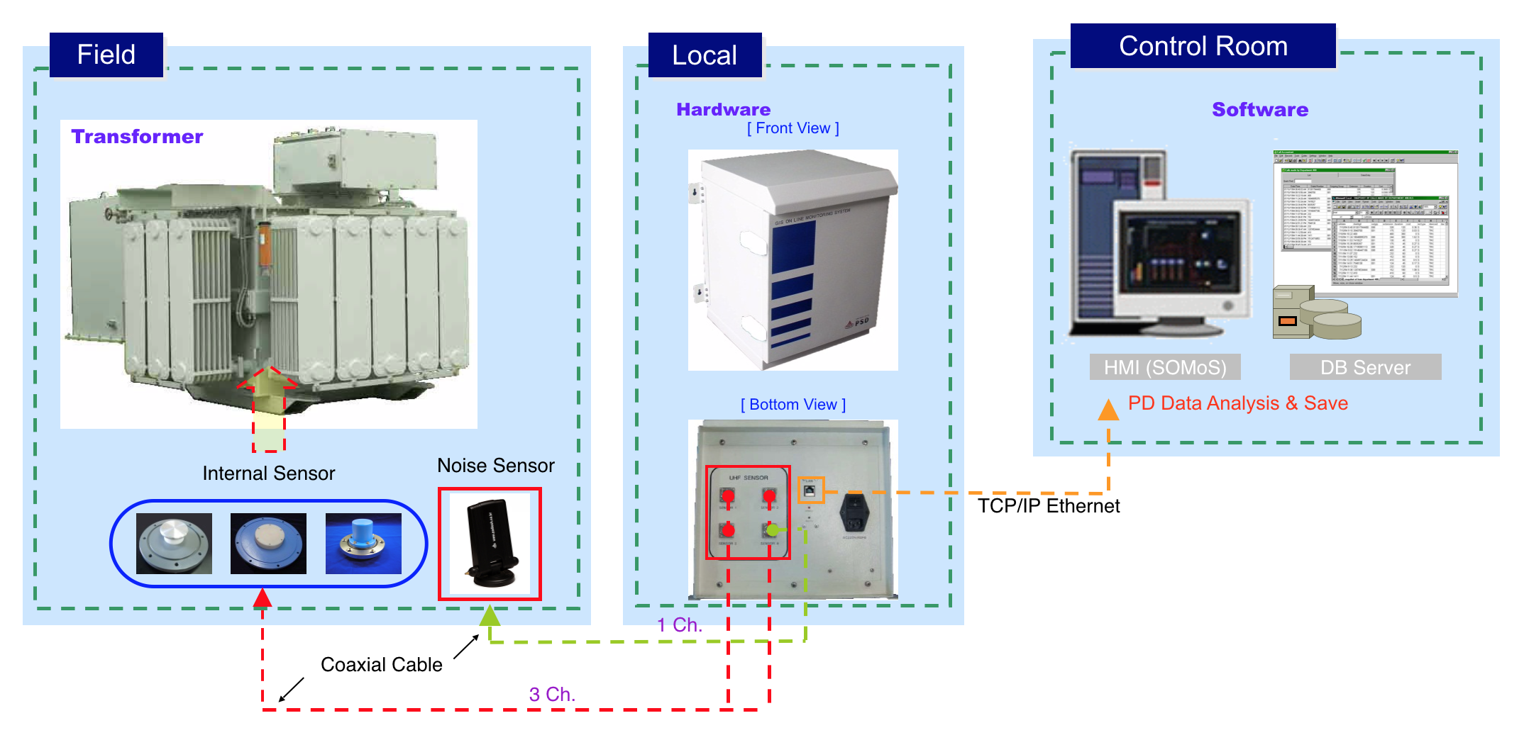 1.On-line monitoring system that measures partial discharge by internal defect such as GIS, MOLD TR, TR, MCSG